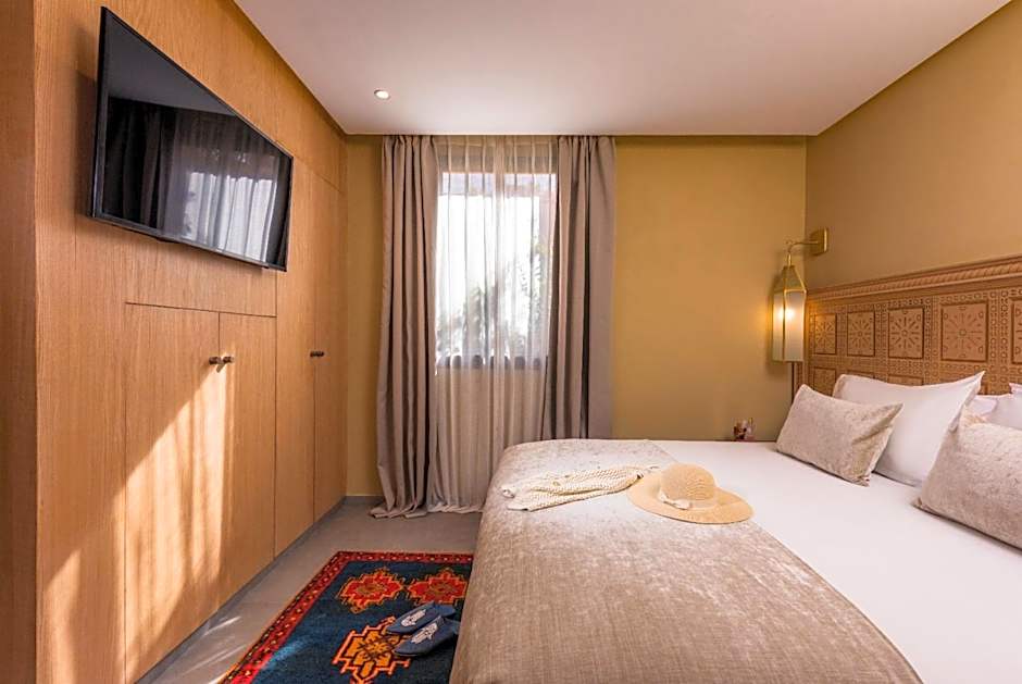 Decorated in warm colors, this suite features a large seating area and Berber artwork.